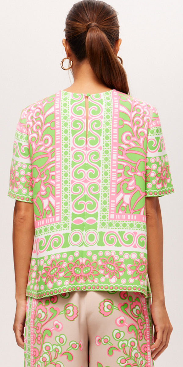 Breezy and effortless, this short-sleeve top features a placed floral print, a round neckline, and a relaxed boxy fit. Designed for versatility, this lightweight top is perfect for easy day-to-night styling.